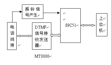 中央测控单元由DTMF信号收发器、AT89C51、上位机组成,如图3所示: