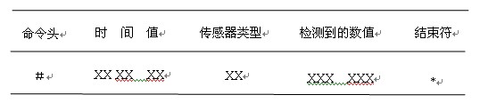 例如:“#05101809080212*”代表:05年10月18日9时8分传感器02采集到某一地区降雨量为12毫米。