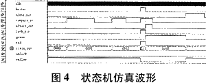 状态机还控制红绿黄3个发光二极管与buzz-er蜂鸣器,仿真波形如图4所示。当系统处在空闲状态、S2状态、S3状态时黄灯亮(S2、S3为第2次、第3次输入密码错误的状态);系统处在修改密码的状态即modify状态时,3个灯一起亮;当处于pass状态时,绿灯亮;当系统处于锁定状态即locked状态时,红灯亮,且蜂鸣器发出报警的声音,直至跳出该状态。
