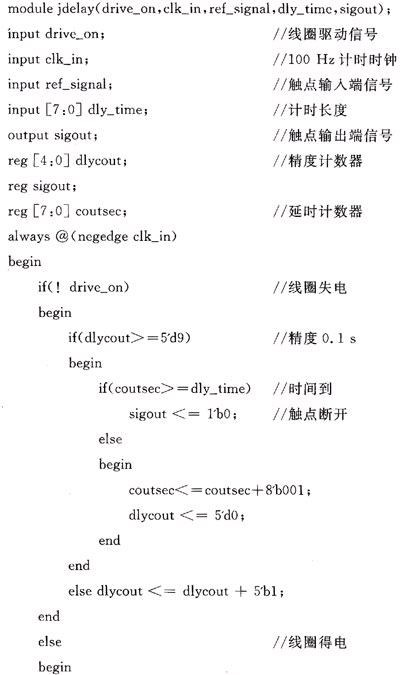 替代后的中间继电器采用通用的模块化设计。在具体应用过程中只要调用这些继电器模块,按原继电器连接信号进行端口定义就可以方便的使用。自锁连接的继电器功能仿真如图5所示,其端口定义和Verilog HDL实现如下: