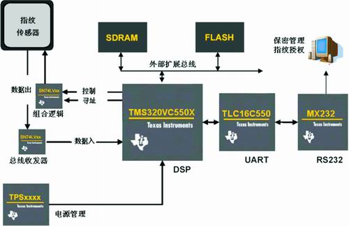 图2 TI C55X平台指纹识别参考框图