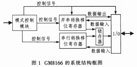 GM8166由控制模块、移位寄存器模块和I/O口模块组成。图1为GM8166的系统结构框图。