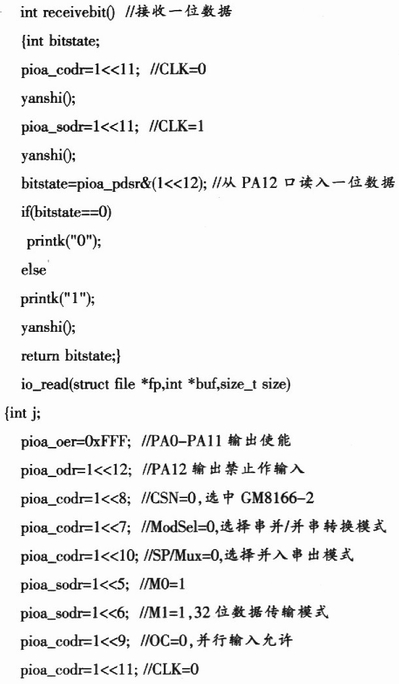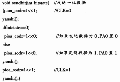 如图2所示,用PAl作为GM8166-l的CLK,用PA0作SDATA,用PAll作为GM8166-2的CLK,用PAl2作SDATA,用软件模拟产生串行接口的传输过程。编程时,应注意GM8166的内部移位寄存器都是在CLK的上升沿移位的,所以读入时应在CLK的上升沿之后读入SDATA的状态,写出时应在CLK上升沿之前置SDATA相应电平。