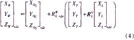 在本研究中,GPS数据输出频率为△t1=50 ms,激光扫描仪数据输出频率为△t2=25ms,这样,就需要对GPS数据进行线性内插,使得设该车载三维测量系统的数据输出间隔为△t=△t2,则对第n个时刻的激光扫描仪坐标转换到WGS-84坐标系
