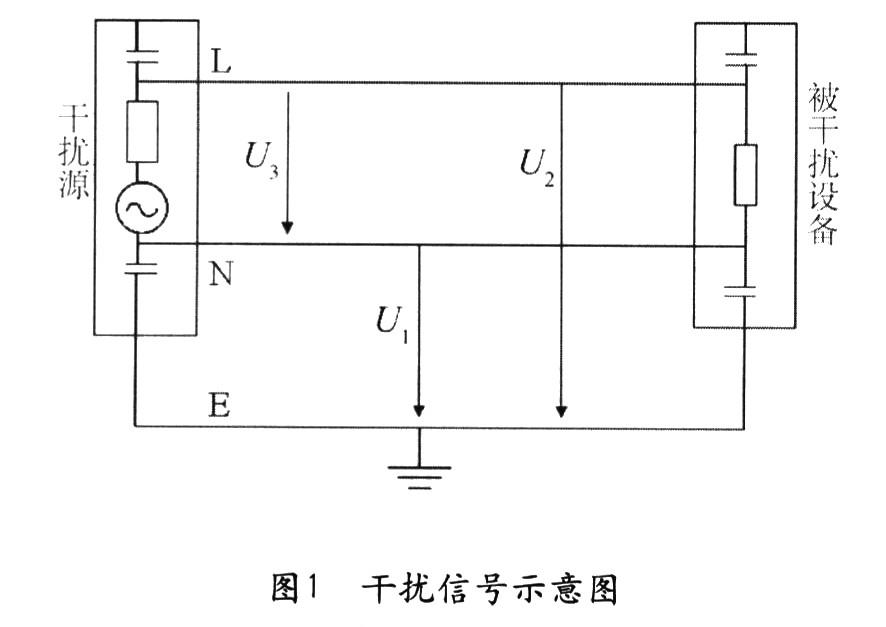 实际上EMI电源滤波器起两种低通滤波器的作用:衰减共模干扰和衰减差模干扰。对任何电源线上的传导干扰信号,都可以用共模和差模干扰信号来表示。并且可把L—E和N—E之间的共模干扰信号、L—N之间的差模干扰信号看作独立的EMI源,把单相电源内的L—E、N—E和L—N看作独立网络端口来分析EMI信号和有关的滤波网络。图1中,U1和U2为共模干扰信号,U3为差模干扰信号。
