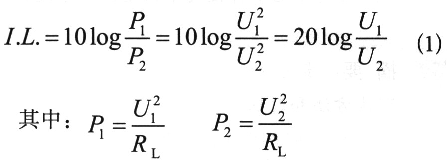 EMI电源滤波器对干扰噪声的抑制能力用插入损耗I.L.(Insertion Loss)来衡量。插入损耗定义为:没有滤波器接入时,从噪声源传输到负载的功率P1和接入滤波器后,从噪声源传输到负载的功率P2之比,用dB(分贝)表示。