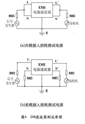 测试标准的确定为电源EMI滤波器的各项指标提供了统一的衡定依据。其中最主要的测试项目为滤波器频域上的插入损耗测试