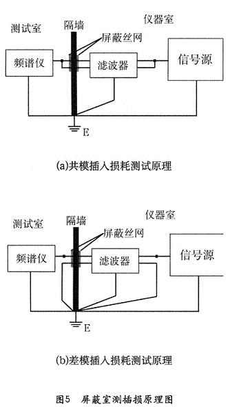 实际测试时,常常利用屏蔽室来测试滤波器的插入损耗,测试图如图5所示。