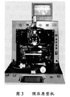 ACF贴附机开发的关键技术在于:精密机械动作的协调与控制、高精度的温度和压力控制。预压机(见图3)的作用是使IC芯片与贴附了ACF的玻璃显示屏基板预贴附成一体。IC芯片的尺寸为:3 mm×1 mm~30 mm×5 mm,厚度为0.3~0.7 mm。