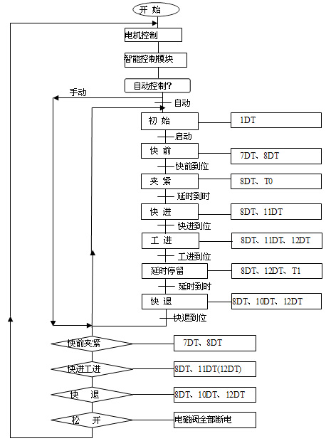 为实现上述功能,需要对运行过程进行智能判断,进行相应的控制。同时考虑到PLC的运算功能的限制,需要加入故障诊断模块,并进行相应的显示。