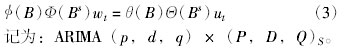 记为:ARIMA(p, d, q) × (P,D,Q)S。