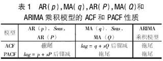 ARIMA乘积模型的自相关函数(ACF))和偏自相关函数(PACF)性质见表1,可以据此判断该模型中各参数的选取。