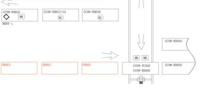 同时,增加MOBY-i系统还需要增加相关的硬件设备,并且要求将读写头安装在图1中红色设备上,而红色部分与黑色部分分别属于两个不同的PLC控制组,两者之间需要设计大量的连锁信号,这也给我们带来了很大的技术难度。