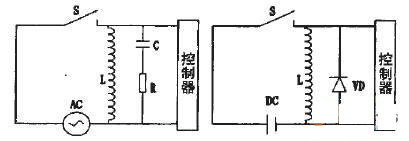 除采用滤波器和控制器良好接地来抑制干扰外,还可考虑以下抗输人干扰的措施。在输入端有感性负荷时,为了防止反冲击感应电动势,在负荷两端并接电阻和电容(为交流输人信号时)见图1,或并接续流二极管(为直流输人信号)见图2。交疏输入方式时,电阻、电容的选择要恰当,才能起到较好的效果。负荷容量在1OVA以下一般选0。1μF、120Ω;负荷容量超过1OVA则选用0。47μF、47Ω比较合适。如果与输人信号并接的电感性负荷较大时,使用继电器中转效果更好。防感应电压的措施K DA。输人端并接浪涌吸收器;②在长距离配线和大电流场合,感应电压大,可用继电器转换。