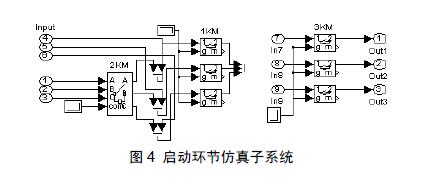 图4为启动环节仿真子系统内部模型结构,封装后为9个输入端、3个输出端的Start子系统模块(见图2),完成电机平稳起动的任务。