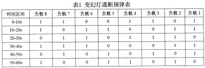 1)变幻灯周期为60 s,8路负载接通规律如表1所示;
