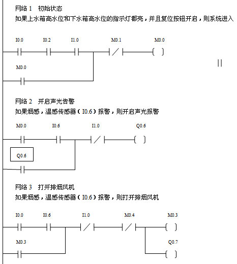 以上四步为并行。当上水箱和下水箱的水位均为满时按下复位按钮,系统回到初始状态。