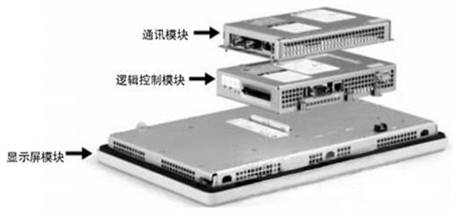 逻辑控制模块包含24V直流输入(18-32)电源,SDRAM内存及CF闪存卡、10/100BaseT以太网端口、可用于文件传送,打印及与可编程控制器通讯的232串行端口、可用于连接鼠标,键盘或打印计的USB端口。内部电路板上内嵌了CPU处理芯片,负责显示屏的输入、输出以及通讯数据的处理工作。通讯模块负责特定的网络传输,以提高数据传输速率。