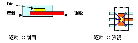 4. 驱动芯片的封装应有利于驱动芯片管芯的快速散热,如将管芯(Die)直接绑定在铜板上,并有一Pin直接延伸到封装外,便于直接焊接在PCB板的铜箔上迅速导热(图1)。如在一个类似4X4mm的硅片管芯上,要长时间通过300-1000mA的电流,必然有功耗,必然会发热,芯片本身的物理散热结构也是至关重要的。