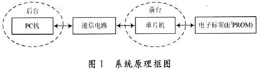 系统主要由四部分组成:后台计算机(上位机)、通信电路、前台单片机(下位机)和存储器(电子标签),见图1。其工作流程为: