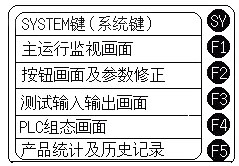 通过其专用的编程软件UG00S-CW在计算机上进行组态、调试下载到人机界面中,连接上通讯电缆后就可进行操作显示。人机界面运行时以自身程序对PLC进行读取、传送,不必担心它的引入而影响PLC的扫描周期。针对MK9-5/PA8-5机组的工艺流程本系统对人机界面功能做如下介绍:该系统画面分为监视画面、参数修改画面、点动测试画面、PLC组态画面、统计和帮助画面五部分。这五部分的操作通过人机界面上的F1—F5五个按键来实现操作翻屏,同时不影响F1—F5的其它功能(如调节背光灯的亮度)如图1。富士人机界面本身具有强大的编程指令—宏指令,此系统的所有弹出报警菜单程序均由人机界面本身完成。
