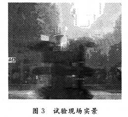 根据实验室布局和设备的需要,遥测发射单元位于旋转台转轴的中心,并随着过载台一起转动。接收天线安装在距试验台15 m距离的墙壁上。出于安全需要,由遥测接收机和同步解调器组成的遥测数据处理单元位于过载实验室隔壁房间。遥测设备分布如图2所示,试验现场实景见图3。可以看出,发动机过载台遥测系统将承受多径衰落和发动机喷焰的影响。