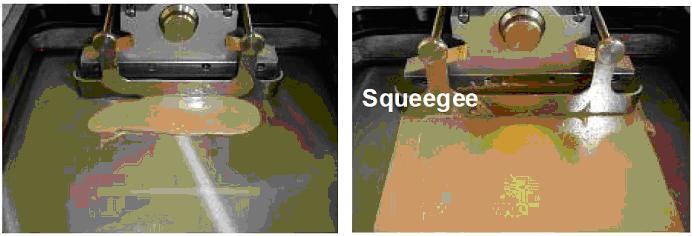 表3:在丝网一端放置导电浆料,用刮刀在将浆料涂抹于丝网,并从网孔中挤压到硅片上。