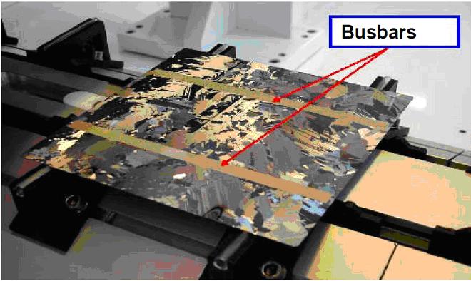 图4:印刷后硅片正面会有大小不同的导线,用来从有效区域采集电能。.