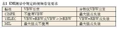 在大多数EMI测量中,视频滤波器指定为关闭,或视频滤波器指定为至少比测量的指定RBW高出三倍(参见表1)。