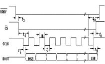 AD7705的串行数据接口包括5个:片选输入口 ,串行施密特逻辑输入时钟SCLK,数据输入口DIN,转换数据输出口DOUT,指示数据准备就绪的状态信号输出口 。其中当 为低电平时,转换数据可读取;否则不可读取。