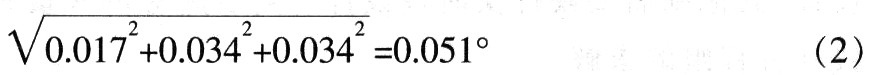 通过上述误差估算,可以看出传感器和信号的放大电路部分仍然是影响系统精度的最关键部分。以上分析的各部分误差经过计算,得到综合误差为0.067°。一般要求器件的误差要优于系统给定性能指标的10倍。则上述该误差的10倍为0.67°,且小于精度是l°的测角要求。