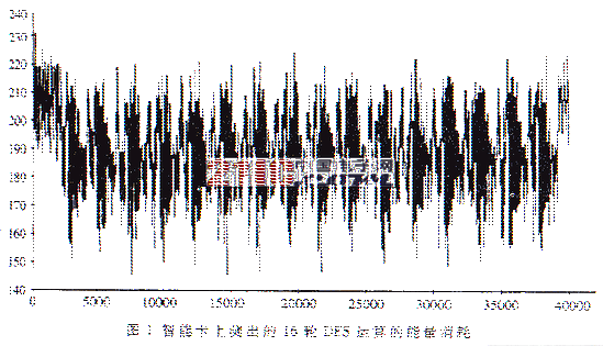 在SPA攻击中,目标本质上来说是利用能量消耗的值来推测出相关的秘密信息甚至是密钥。图1展示了一个智能卡在DES运算中的能量消耗。从图1中可以明显看出智能卡的能量消耗很可能确实提供了有关芯片工作的信息。