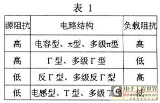 在EMI抑制中,低通滤波器使用得最多。滤波电路通常采用由电感、电容构成的无源滤波器的形式。电容与电感的连接方式不同决定滤波器的Q值和衰减量。噪声滤波器不仅要考虑其基本结构,还要考虑其所连网络两端的阻抗大小,并根据源阻抗及负载阻抗的不同,依照阻抗最大失配原则来选择正确的接法,两者阻抗差别越大,滤波器的滤波效果也就越好。电路结构的选择原则规律是"电容对高阻、电感对低阻",如表1。