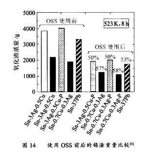 日本学者Tadashi Takemoto等人在试验中使用了自己研制的一种锡渣分离并再利用的装置,如图13该装置附在锡炉上。波峰焊机工作8 h而锡渣分离系统(OSS)运行半小时即可。据称该系统可使锡渣产生量减少一半(如图14)。