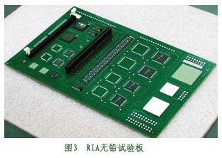 基于这一块试验板的试验结果,我们设计了RIA2试验板(如图4所示)。试验板比原来的RIA试验板更厚,板上的器件种类更多,其层压材料的耐无铅焊接高温性能更好,层压材料的厚度也有所增加。试验的目的是想用这一更厚、更有难度的单板,进一步试验优化组装、返修和波峰焊工艺。另外,试验板将用于在足够的统计样本基础上,进行具体工艺参数分析,同时对组装好的单板进行可靠性试验,以得到相关数据。可靠性数据是确认无铅组装工艺的关键依据,也可评估各种工艺参数对可靠性的影响。同时,也对在锡铅工艺中使用无铅器件的效果进行了评估。