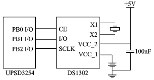 图3 UPSD3254与时钟芯片DS1302的电路连接