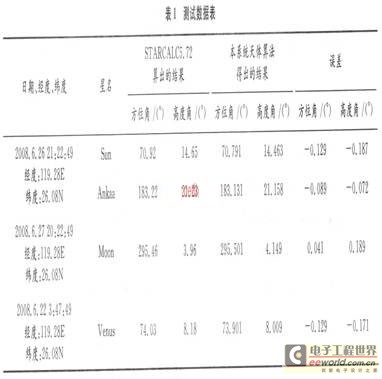从比较结果可以看出,由本系统的天体视位置计算算法得出的方位角平均误差为0.261°,高度角平均误差为0.155°,小于系统使用望远镜(物镜焦距360 mm,目镜焦距20 mm)视角6.35°,满足系统观测要求。