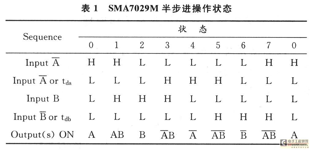 SMA7029M可以通过外部逻辑控制实现电机状态的改变,表1给出了详细的控制方式及输出结果。