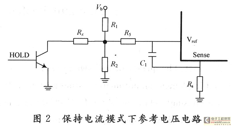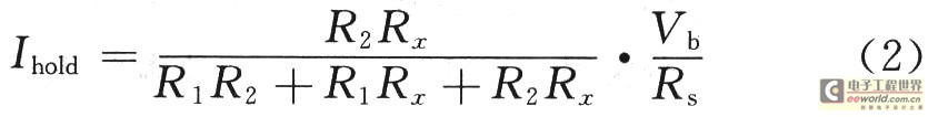 其中外部三极管可以改变分压比,使参考电压Vref发生变化,从而减小输出电流。此时的Ihold由电阻R1,R2,Rx,Rs以及电压Vb共同决定: