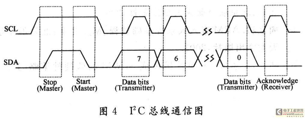FM3164作为从机,集成了两个功能不同的部件,每个部件都可以被独立访问。一个是存储器,访问时从机地址的位7~4必须被设置为1010B;若要访问实时时钟/处理器等,则从机地址的位7~4必须被设置为1101B。该器件采用二线制的I2C接口,二线协议由SDA和SCL两个引脚的状态确定。共有四种状态:开始、停止、数据传输及应答。I2C总线通信基本格式如图4所示。