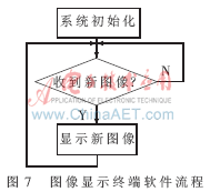 LM3S1138为无线可视门铃终端控制器,实现功能为图像接收、缓冲及显示,其软件流程图如图7所示。