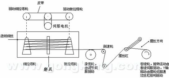 3、拉细后的丝经过滑差轮,这个轮的作用主要是保持恒定张力;