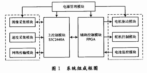 本文介绍的智能小车可移动视频监控系统,以“飞思卡尔杯”智能小车竞赛提供的车模装置为基础,利用ARM芯片S3C2440A控制图像采集、网络传输、速度采集干扰小的模块,利用FPGA芯片控制电机驱动、舵机控制、电量采集干扰大的模块,当上位机通过Internet访问智能小车服务器时,在监控界面上点击按钮来控制小车的运行、图像拍摄、速度采集。