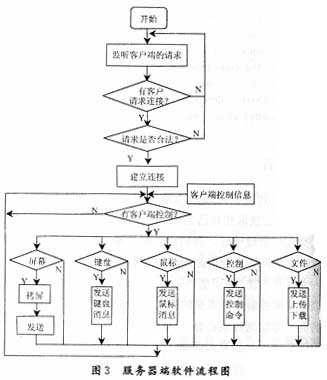 可以让客户端用户实时监控服务器端计算机的运行状态。客户端以一定频率向服务器发送请求,服务器响应客户端请求将自己的屏幕拷贝下来并将这些信息发送给客户端,客户端接收到这些信息之后以图形的形式显示出来,为鼠标和键盘控制提供图形化接口。