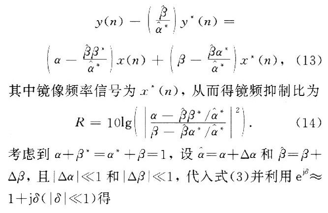 通常用镜频抑制比R来衡量1/Q支路不平衡补偿的性能。由式(7)可以得到补偿后的基带信号为