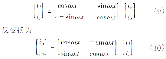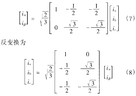 上述方程是通过a,b,c坐标系统到d,q转子坐标系统的变换得到的。这里取转子轴为d轴,q轴顺着旋转方向超前d轴90%26;#176;电角度。其坐标变换如下。