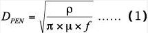 绕线的交流电阻,则由特定频率下导体电流存在的深度而定,这称为穿透深度(penetration depth),这是电流密度下降到表面电流密度(或直流)1/e时的点,这个点可以由以下方程式得出: