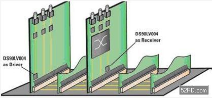 另外一种更具成本效益的解决方案,是使用一个简单的LVDS缓冲器来驱动和接收底板上传来的信号。它会将信号传输路径再细分为很短的区段,以遮蔽阻抗误配的问题,并减少信号衰减。