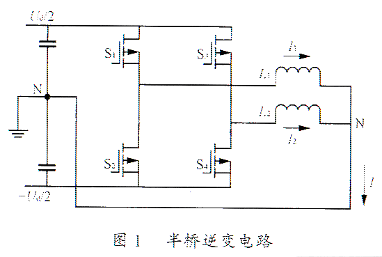 但是,对于单相电机,采用半桥逆变电路面临这样一个问题:由于电机的两相电流I1及I2在相位上相差90%26;#176;,因而流向中性点N的两相电流之和I是两相电流的矢量和。