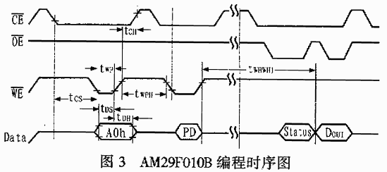 OE,WE:分别为读、写控制线。图3给出了对FLASH编程时,CE、OE和WE的状态时序。